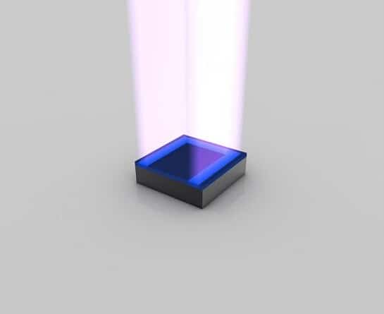 晶圓測試:內(nèi)核級別,大約10毫米/0.5英寸。圖中是晶圓的局部,正在接受第一次功能性測試,使用參考電路圖案和每一塊芯片進(jìn)行對比。