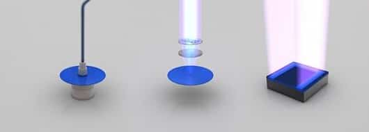 光刻:由此進(jìn)入50-200納米尺寸的晶體管級別。一塊晶圓上可以切割出數(shù)百個處理器,不過從這里開始把視野縮小到其中一個上,展示如何制作晶體管等部件。晶體管相當(dāng)于開關(guān),控制著電流的方向。現(xiàn)在的晶體管已經(jīng)如此之小,一個針頭上就能放下大約3000萬個。