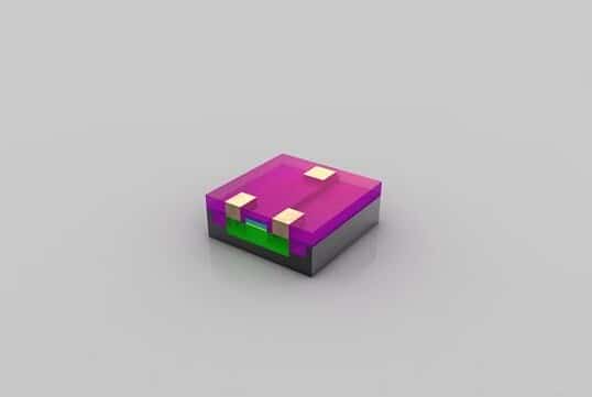 晶體管就緒:至此,晶體管已經(jīng)基本完成。在絕緣材(品紅色)上蝕刻出三個孔洞,并填充銅,以便和其它晶體管互連。