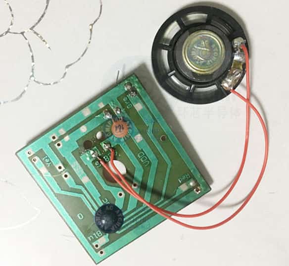 2,語音芯片電路中正負(fù)極的104電容(0.1uF),除極少數(shù)簡易功能芯片在紐扣電池4.5V以下供電時(shí),都不能省去,否則會(huì)引發(fā)不發(fā)聲音,聲音中斷,雜音等不良情況。