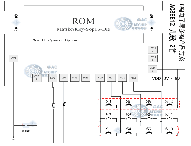 多鍵和弦音樂矩陣八鍵玩具芯片方案資料:
